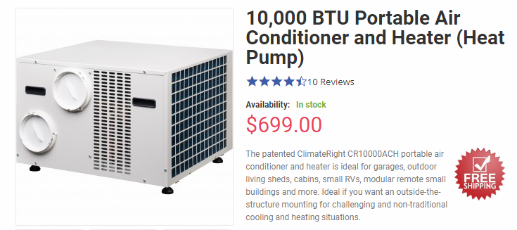 ClimateRight 10000 BTU Air Conditioner/Heater 115 VAC 1250 watts