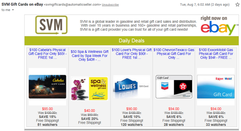 I'm on two mailing lists, Active Junky and SVM Gift Cards.