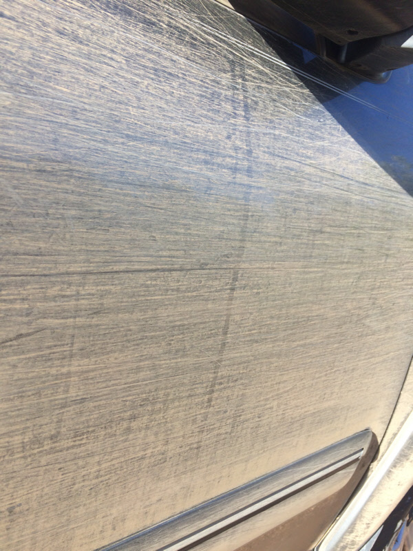 The trail was very dusty. I initially tried to keep the windows open to enjoy the scenery, but quickly opted to close them and run the air conditioner. The inside mechanism of my rear door became so dirty it stopped functioning.