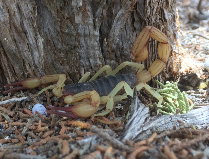 First noticed these guys, Arizona Giant Hairy scorpions, when a couple invaded a trash bag that was left out over night. Arizona Bark scorpions were also prevalent.