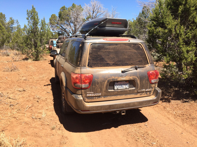 The trail was very dusty. I initially tried to keep the windows open to enjoy the scenery, but quickly opted to close them and run the air conditioner. The inside mechanism of my rear door became so dirty it stopped functioning.